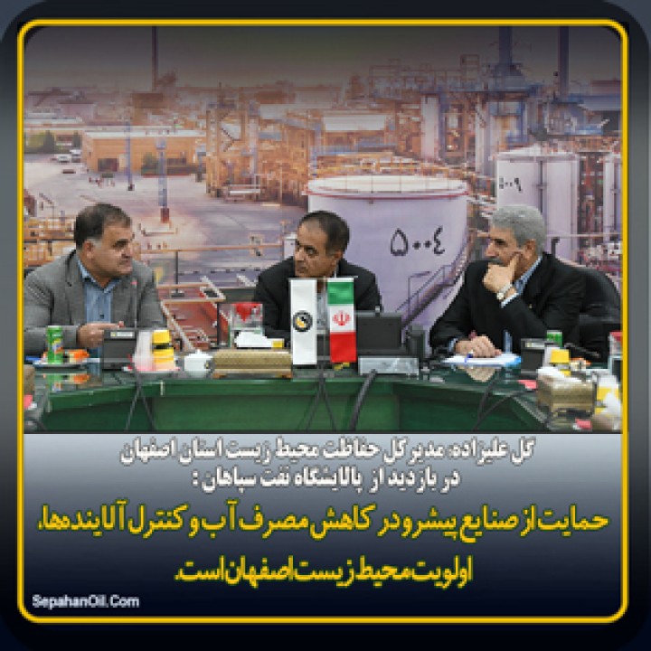 در راستای بررسی وضعیت زیست‌محیطی صنایع بزرگ نفتی در استان، جناب آقای دکتر گل‌علیزاده، مدیرکل محترم حفاظت محیط زیست استان اصفهان و هیئت همراه، روز شنبه ۲۱ تیرماه ۱۴۰۴ با حضور در پالایشگاه نفت سپاهان، از واحدهای عملیاتی و پروژه‌های زیست‌محیطی این مجموعه بازدید کردند.